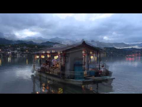 2015年9月28日(月)18時すぎ予定では、中の島公園から、日田温泉 亀山亭ホテルをみてみると満月...